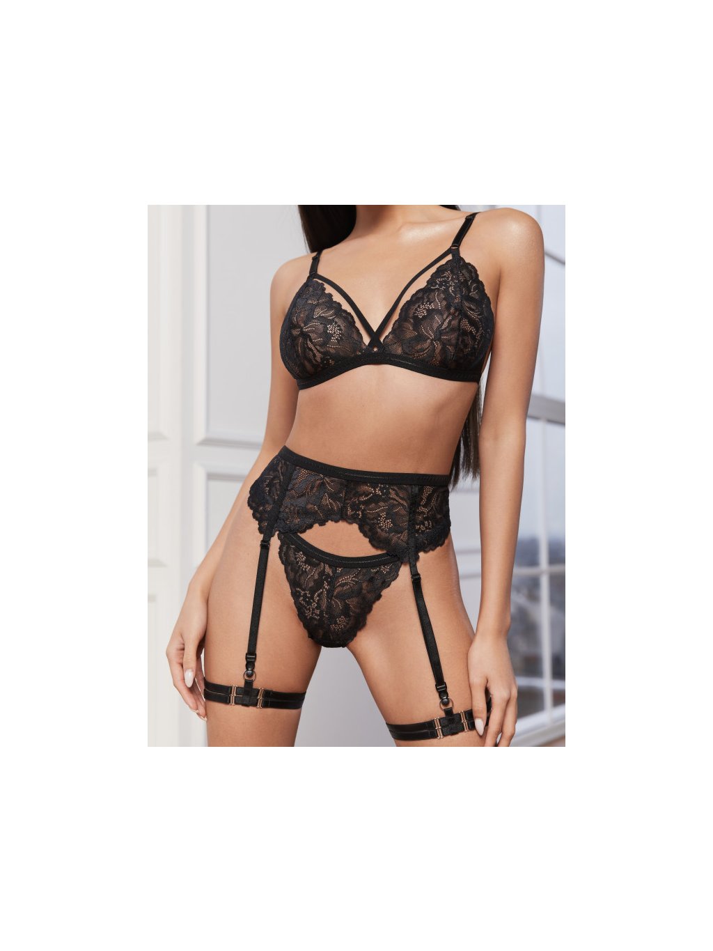 Elegantná súprava podprsenky, brazílskych nohavičiek a podväzkového pásu je vhodná pre všetky dámy. Spodná bielizeň je vyrobená